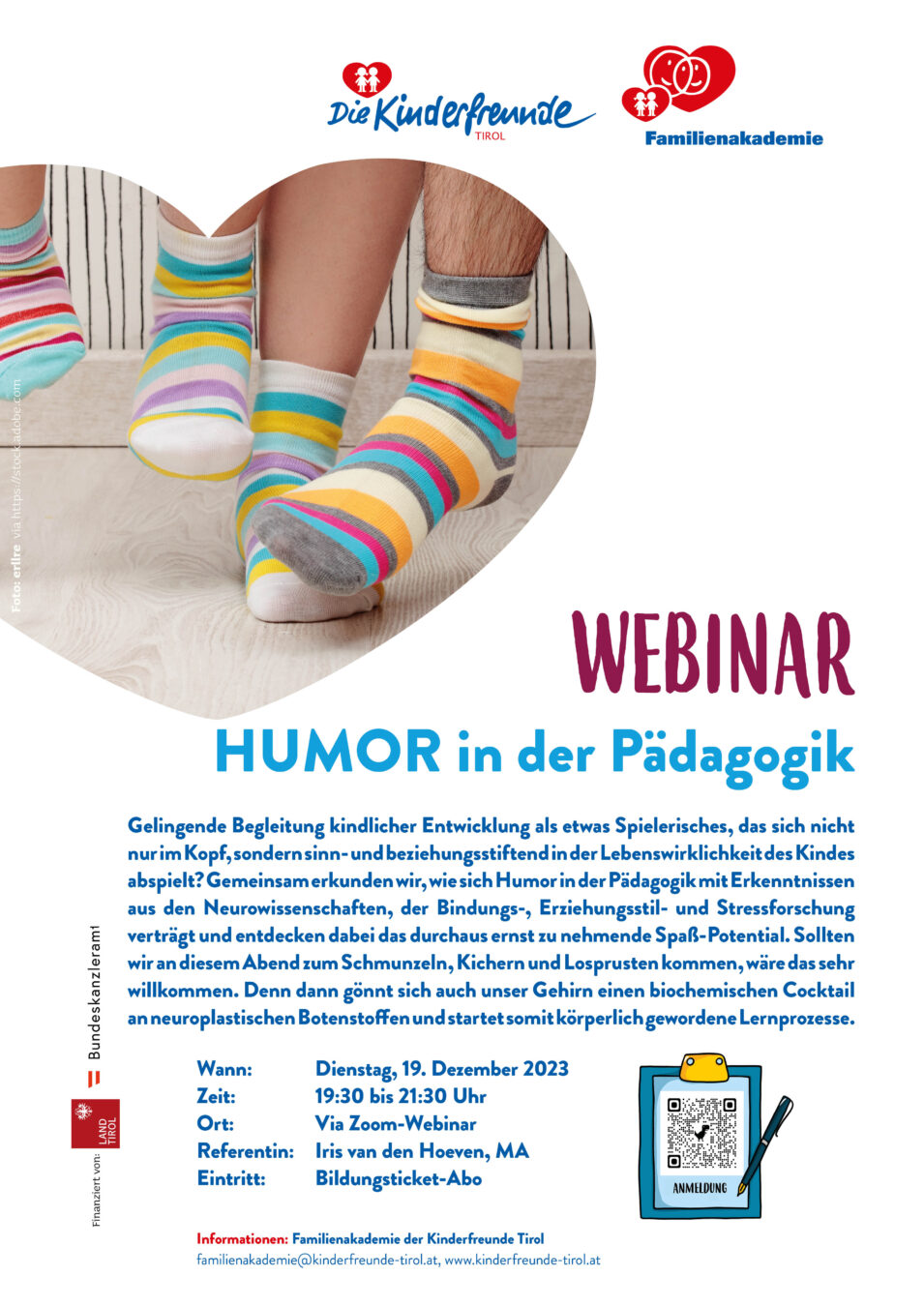 Gelingende Begleitung kindlicher Entwicklung als etwas Spielerisches, das sich nicht nur im Kopf, sondern sinn- und beziehungsstiftend in der Lebenswirklichkeit des Kindes abspielt? Gemeinsam erkunden wir, wie sich Humor in der Pädagogik mit Erkenntnissen aus den Neurowissenschaften, der Bindungs-, Erziehungsstil- und Stressforschung verträgt und entdecken dabei das durchaus ernst zu nehmende Spaß-Potential. Sollten wir an diesem Abend zum Schmunzeln, Kichern und Losprusten kommen, wäre das sehr willkommen. Denn dann gönnt sich auch unser Gehirn einen biochemischen Cocktail an neuroplastischen Botenstoffen und startet somit körperlich gewordene Lernprozesse.