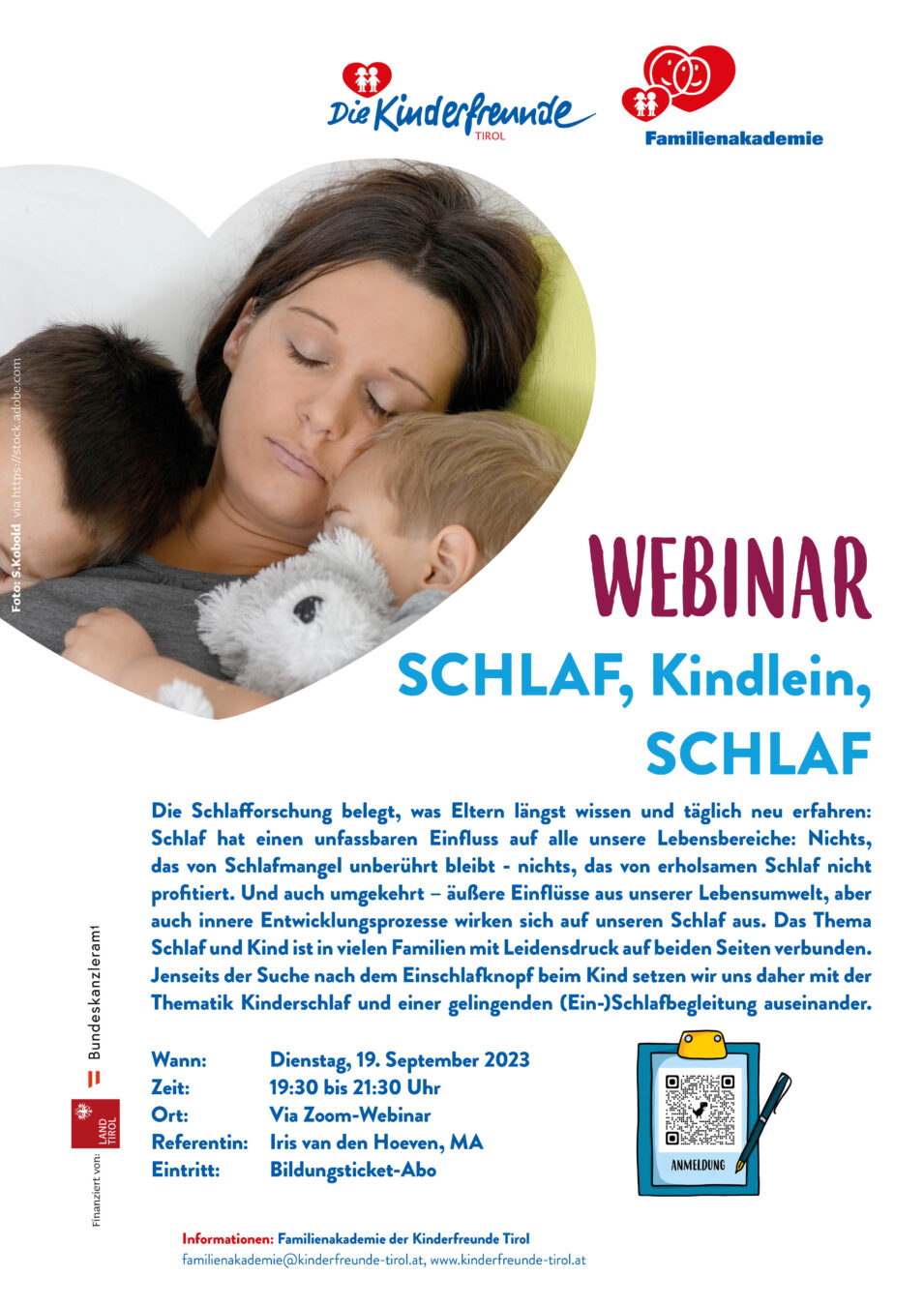Die Schlafforschung belegt, was Eltern längst wissen und täglich neu erfahren: Schlaf hat einen unfassbaren Einfluss auf alle unsere Lebensbereiche: Nichts, das von Schlafmangel unberührt bleibt – nichts, das von erholsamen Schlaf nicht profitiert. Und auch umgekehrt – äußere Einflüsse aus unserer Lebensumwelt, aber auch innere Entwicklungsprozesse wirken sich auf unseren Schlaf aus. Das Thema Schlaf und Kind ist in vielen Familien mit Leidensdruck auf beiden Seiten verbunden. Jenseits der Suche nach dem Einschlafknopf beim Kind setzen wir uns daher mit der Thematik Kinderschlaf und einer gelingenden (Ein-)Schlafbegleitung auseinander.